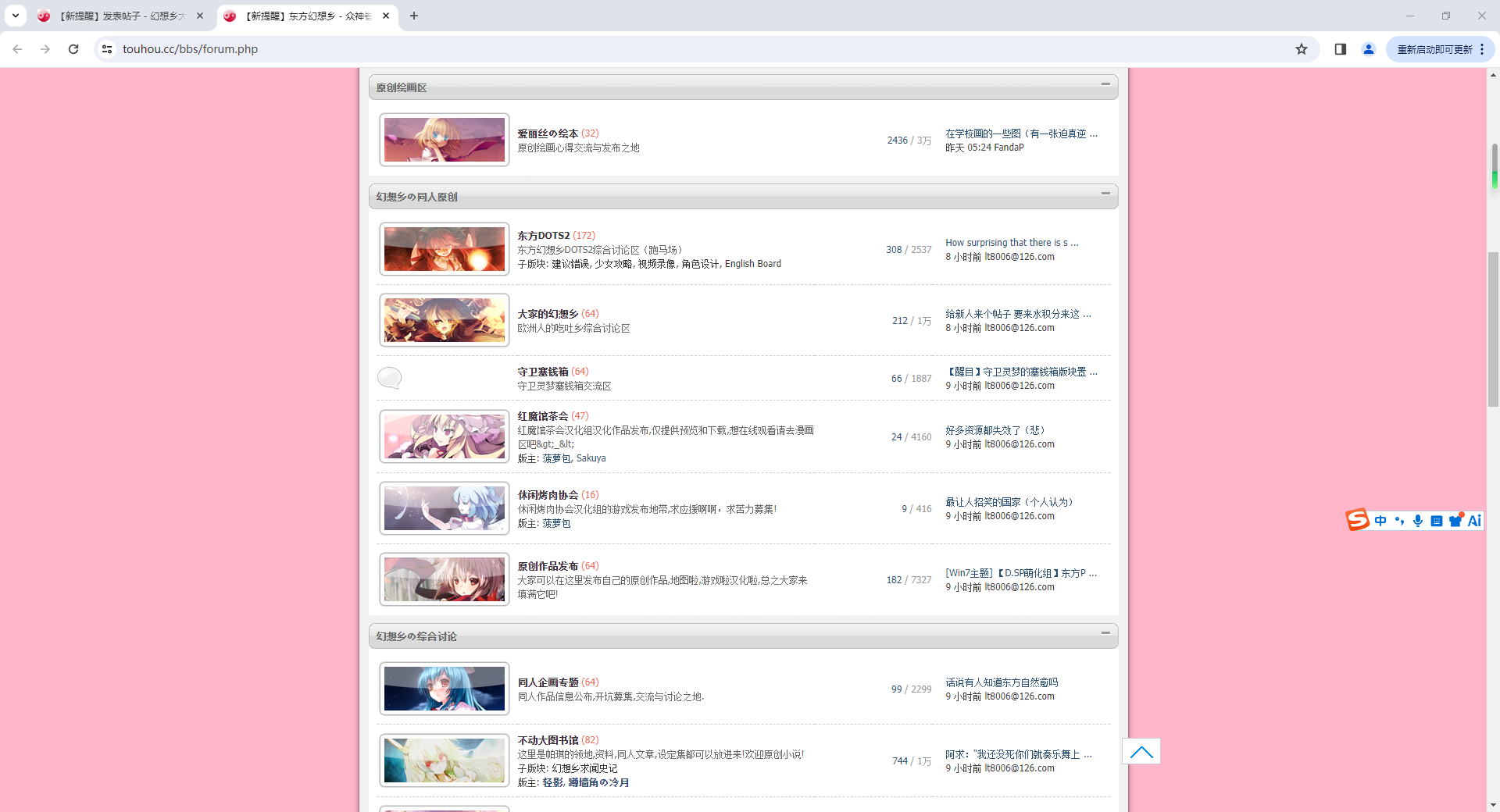 2026年4月20日,touhou.cc/bbs,即东方幻想乡论坛,日回复数量达到了1746!